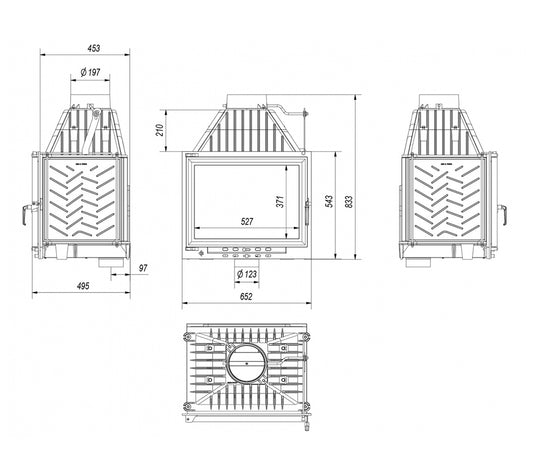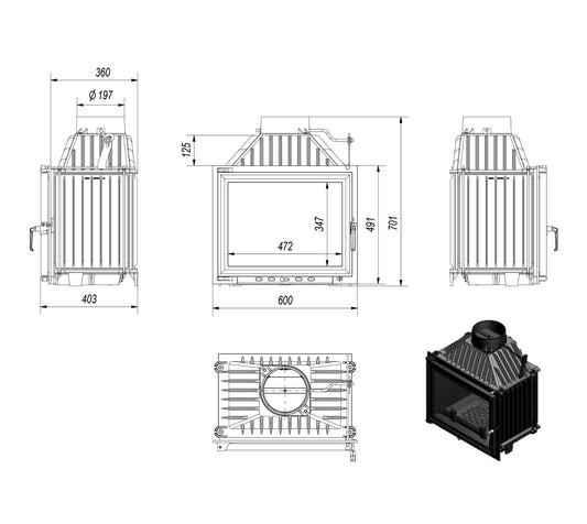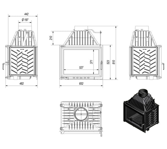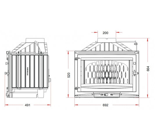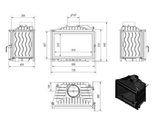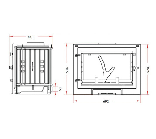 Șemineu din fonta HELTAU PLUS 8, 8kW- sticla dreapta fara stalp