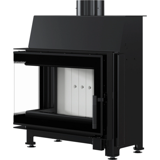 Șemineu din oţel SIMPLE S Modern 7-8kw sticla stanga fara stalp